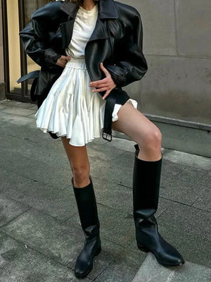 DEEPTOWN Elegant White Ruffles Mini Skirt for Women Fashion Chic Pleated Fluffy Skirts 2024 Summer New Female Party Streetwear