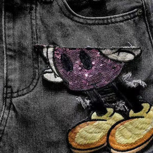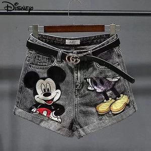 Home Disney New Arrival Top Fashion Cotton Zipper Women Embroidery Mickey Mouse Female Summer Big Irregular Flash High Waist Short