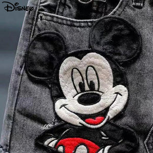 Disney New Arrival Top Fashion Cotton Zipper Women Embroidery Mickey Mouse Female Summer Big Irregular Flash High Waist Short