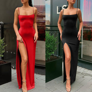 Women Sexy Solid Dress Strap Slim Split Dress Long Party Club Dress Evening Party Sundress Dress S Lash Neck Elegant Dress