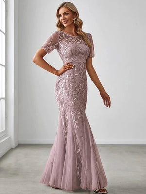 This gorgeous sequined tulle dress oozes romance with its shimmery leave design and a sheer round neckline. It is a perfect choice for people who are looking for an elegant look, but its delicate details add just enough flair to show your taste. Suit for evening party, cocktail, prom, homecoming, graduation, weddings, and any other formal affair!