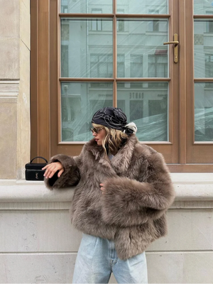 Elegant Faux Fur Solid Lapel Warm Women's Jacket Chic Long Sleeve Crop Oversized Warm Coat 2024 New Winter Lady Thick Outerwears