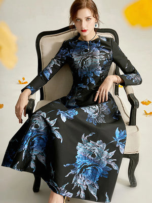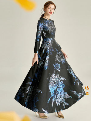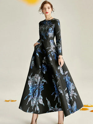 Elegant New Women's Jacquard Long Maxi Dress Slim Party Boho Floral Fashion Evening Clothing Vintage Ladies Vestido