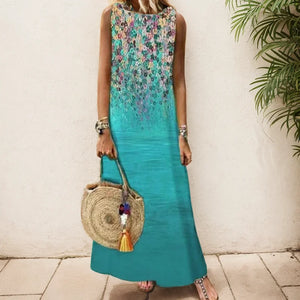 Elegant Printed O-Neck Sleeveless Women Dress Fashion Summer Loose Casual Beach Long Dresses Ladies Boho Maxi Dress Vestidos