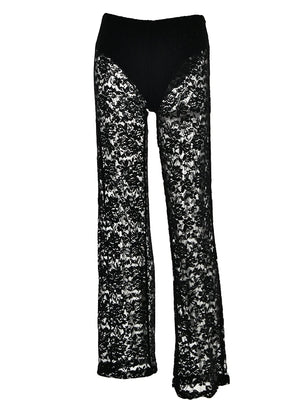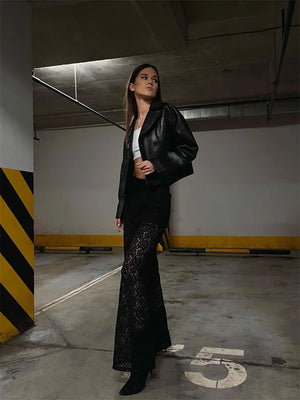Fantoye Sexy See Through Lace Women Pant White Hollow Out High Waist Two Piece Sets Female Autumn Casual Outside Streetwear