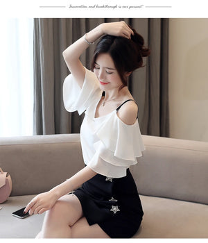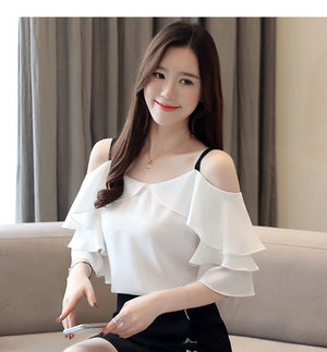 Fashion Blouses Woman Off Shoulder Top Women Blouses White Chiffon Blouse Women Camisas Mujer Womens Tops And Blouses