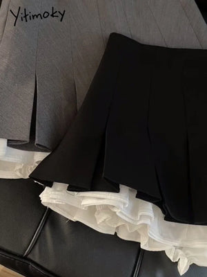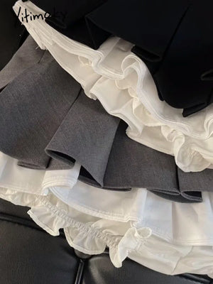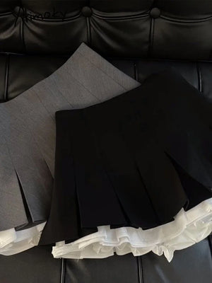 Fashion Minifalda Con Volantes Para Mujer Faldas Plisadas De Retazos Coreanos Faldas De Cintura Alta Que Combinan Con Todo Nueva