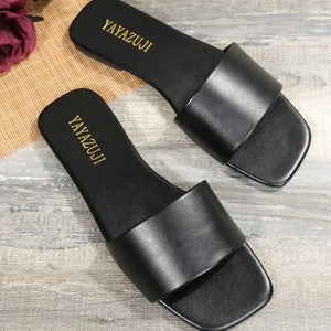 Fashion Minimalist Single Band Slide Sandals Solid Color Women Slippers Summer New Outdoor Sandy Beach Open Toe Flat Shoes