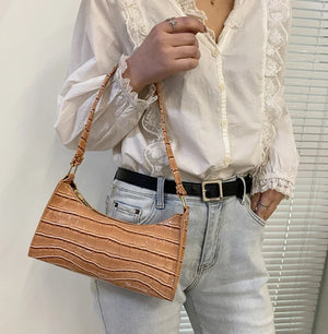 Fashion PU Leather Bags for Women Alligator Pattern Armpit Handbag Female Small Underarm Messenger Bag Purse