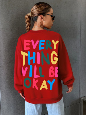 Fashion Womans Sweatshirt Everything Will Be Okay Letter Printed Pullover Loose Warm Crewneck Hoodies Casual Female Clothing
