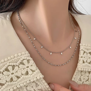 French Exquisite Double Layer Twin Diamond-shaped Sequins Titanium Steel Necklace