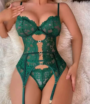 Garter Belt Lingerie Set Lace Bodysuit Deep V Bra Thong Sets Without Stockings Sexy Underwear 2 Pcs Bras Panties BodyStockings