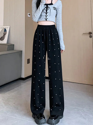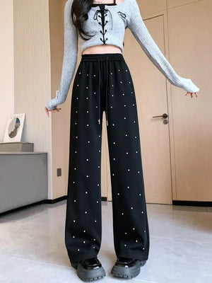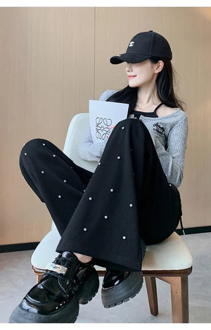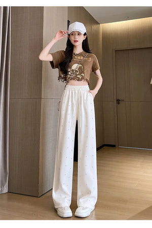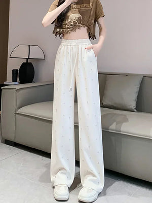 Home Heavy Industry Hot Diamond Wide Leg Pants for Women's Spring New Casual High Waist Loose Straight Tube Drop Floor Dragging Pants