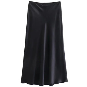 HXAO Women Satin Midi Skirt Fashion Female High Waist Long Skirts Summer 2024 New In Skirt Luxury Elegant Ladies All-Match Skirt