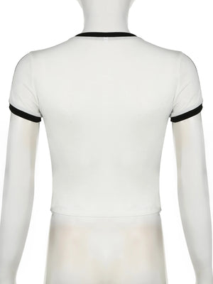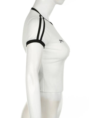 IAMSURE Sporty Activewear bow patchwork cropped t shirt preppy style o-neck short sleeve tees women 2024 summer fashion ladies