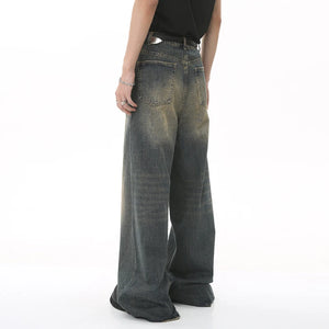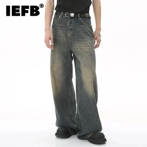 IEFB Summer Men's Denim Pants Old Blue Washed Male Jeans Straight Casual Menwear Loose Wide Leg Trousers New Fashion