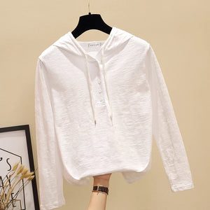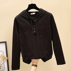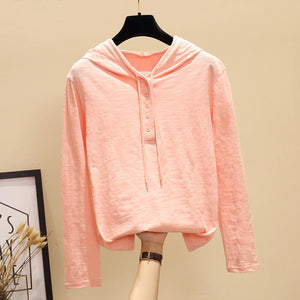 Korea T Shirt Women 2021 Fall Hooded T-Shirt Woman Casual Cotton Top Harajuku Soft Tee Female Pink Long Sleeve Plus Size Tshirt