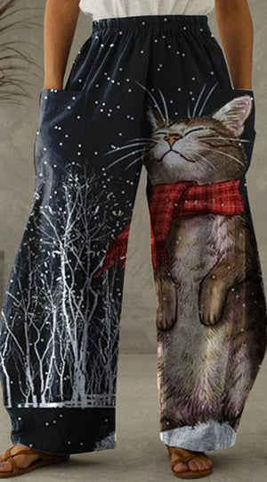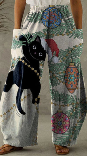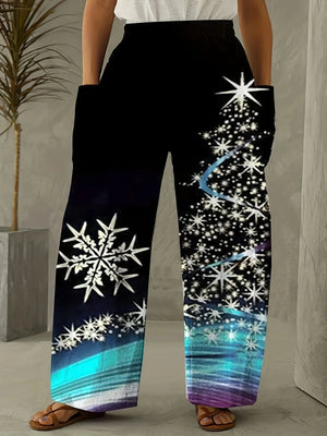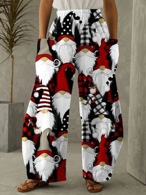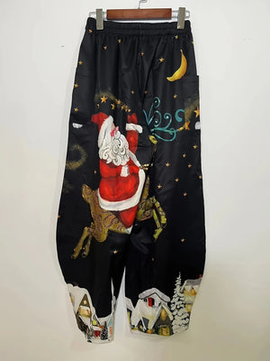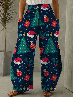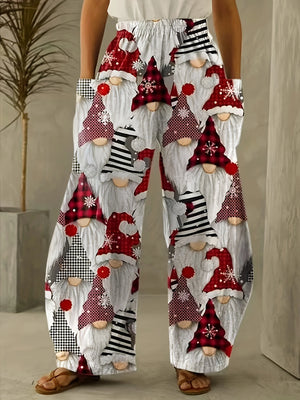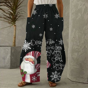 Ladies'Casual Pants Santa Claus Reindeer Print Elastic Waistband Pockets Casual Loose Pants Street Fashion Women's Clothing