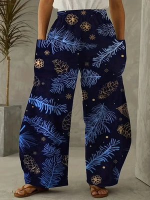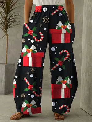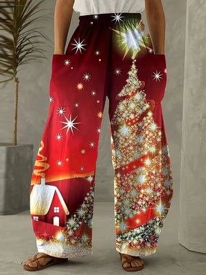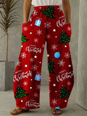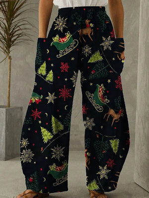 Home Ladies'Casual Pants Santa Claus Reindeer Print Elastic Waistband Pockets Casual Loose Pants Street Fashion Women's Clothing