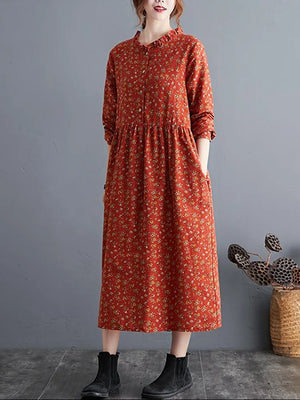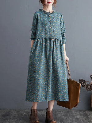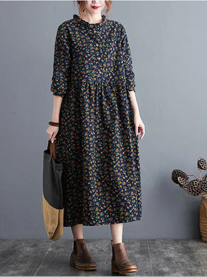 long sleeve cotton linen ruffle vintage floral new in dresses for women casual loose spring autumn dress elegant clothing