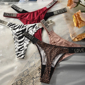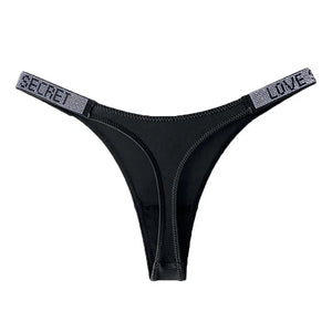 Low Waist Sexy Panties Women Thongs Rhinestones Letter Diamonds G-string Sports Thong Shorts Briefs T-back Fitness S-XL