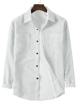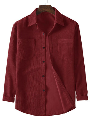 Men's casual long-sleeved corduroy solid color lapel shirt