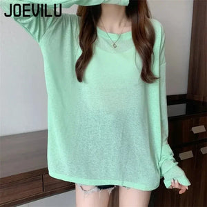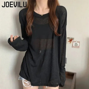 Mesh Sunscreen Clothing Long Sleeved T-shirt Cover Women's Summer Thin Fairy Tops Ladies Korean Casual Bottom Shirt Loose Blouse