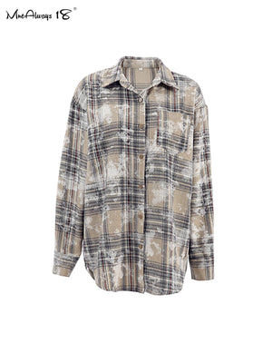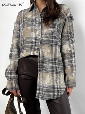 Mnealways18 Street Oversize Vintage Gingham Blouses Women Long Sleeve Classic Shirts Casual Pocket Ladies Plaid Tops Spring
