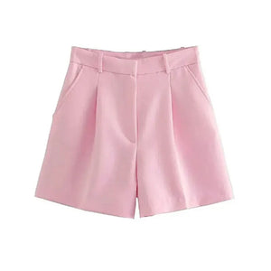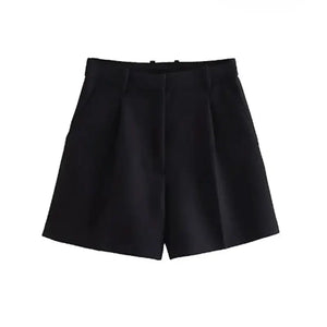 Mooyufon Women Fashion Side Pockets Front Darts Bermuda Shorts Vintage High Waist Zipper Fly Female Short Pants Mujer