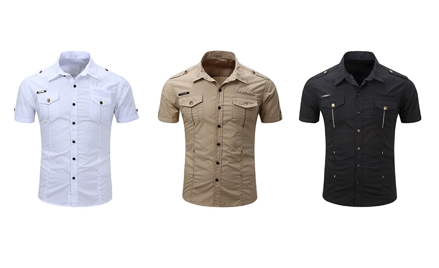 New Fashion Men's Safari Shirt Short Sleeve Summer Casual Tactical 100% Cotton Cargo Outdoor Pocket Work Shirts for Men