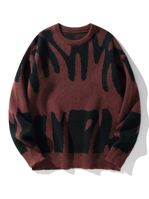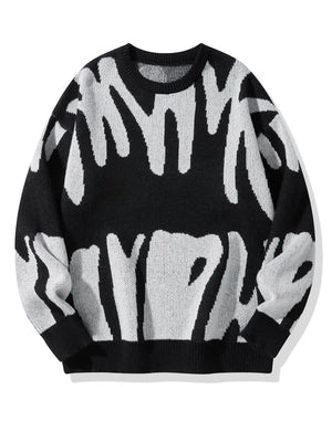 New Popular Autumn Winter Irregular Jacquard Pattern Pullover Sweater Casual Round Neck Contrast Color Knitted Men's Pullover