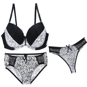 New Sexy Bra Sets For Women 3 Piece Underwear Strap Transparent BCDEF Cup Female Beige Black Blue Purple Red White Lingerie