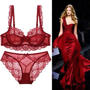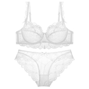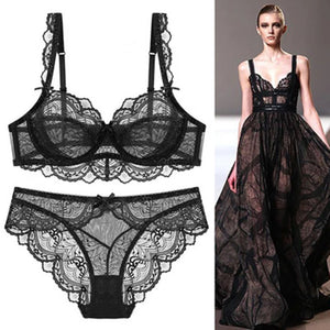 New Style ABCDE Cup Bra Sets Ultra-Thin Transparent Flower High-Quality Push Up Underwear Suit Plus Size Lingerie