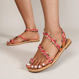 New Style Set Toe Color Women's Sandals Holiday Lightweight Petal Plus Size Beach Shoes Pink Red Fashion Travel Outdoor Slippers