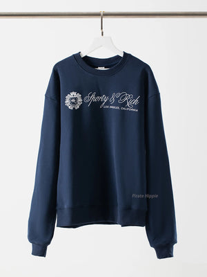 New York Letter Print Sweatshirt Women Classic O Neck Long Sleeve Pullover Autumn Casual Vintage Sporty Rich Sweatshirt