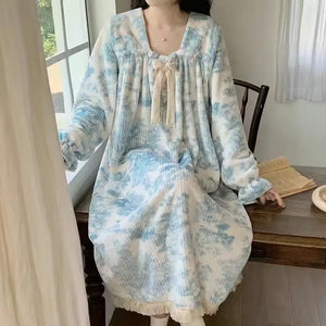 Nightgown Bathrobe Women's Clothing Homewear Winter Thick Cute Coral Velvet Comfortable Casual Simple Stylish Loose Large Size