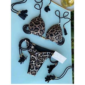 OIINAA Swimsuit Women Bikinis Set Sexy Drawstring Bikini Beachwear Leopard Two-pieces Swimwear Bathing Suit Lace Up Bikini Set
