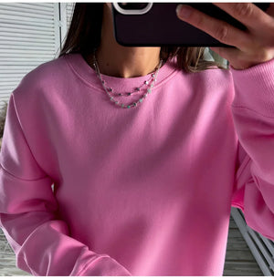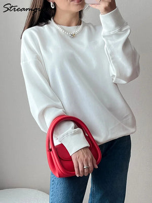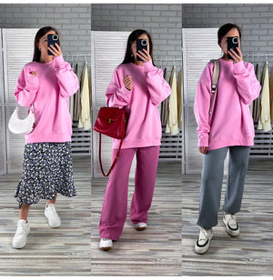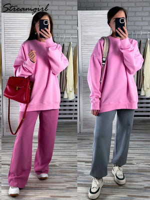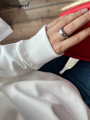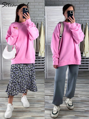 Oversize Winter Warm Sweatshirt Women Basic Tops Boyfriend Pink Loose Vintage Pullovers Women Winter Fleece Lined Sweatshirts