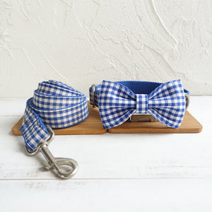 Personalized Tie Tie Blue Delicious Plaid Adjustable Dog Collar Leash Set