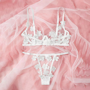 Sexy G-string Flowers Embroidery Bralette Lace Bra Bustier Lingerie Thong