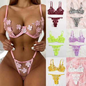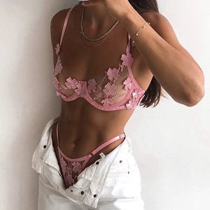 Sexy Flowers Embroidery Bralette Lace Bra Bustier Lingerie Sexy Lingerie For Fine Women Fantasy Transparent Intimate Set