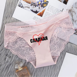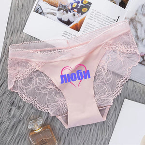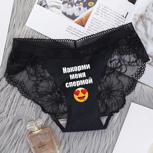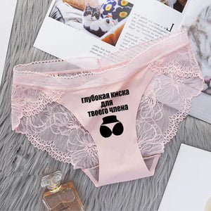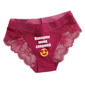 Sexy Lace Seamless Women Briefs Underwear with Russian words and cute emoji Printing Panties Asain Size Lanmaocat Wholesale