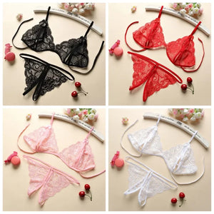 Sexy Non Padded Bra and Panties Set Tie Up Ultra Thin Underwear Couples for Date Night Open Crotch Thong Lingerie Set