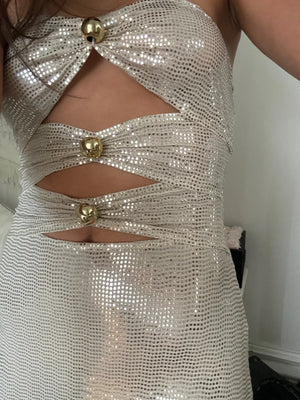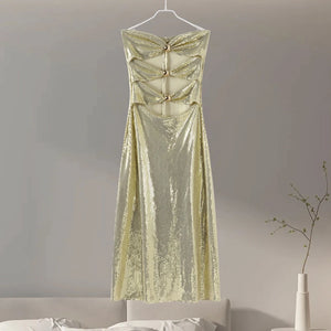 Sexy Sequined Beading Women Long Dress Slim Hollow Out Sleeveless Female Evening Dresses Summer Pleated Street Lady Robe