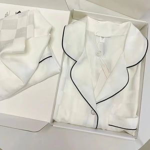 Spring Autumn New Ice Silk Sleepwear Women Lapel Diamond Clasp Cardigan Women Two Piece Set Elegance Purple Women's Pajamas