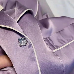 Home Spring Autumn New Ice Silk Sleepwear Women Lapel Diamond Clasp Cardigan Women Two Piece Set Elegance Purple Women's Pajamas
