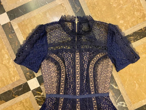 Home Spring/Summer New Women's Water soluble Lace Splicing Deep Blue A-line Layer Cake Slim Fit Long Dress
