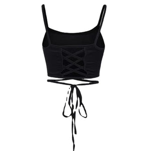 Summer Crop Tops Y2K Top Women Backless Tank Top Streetwear Solid 2024 Skinny O Neck Sleeveless Lace Up Black Tank Top