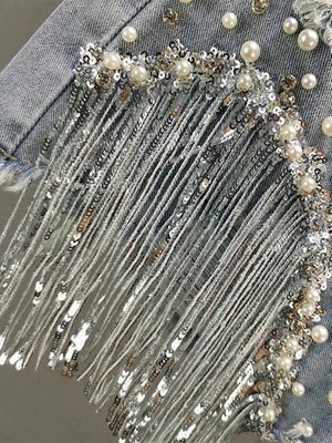 Summer Elegant Shorts Lady Tassel Beading High Waist Wide Leg Denim Shorts Female Casual Solid Shorts Jeans for Women Clothing