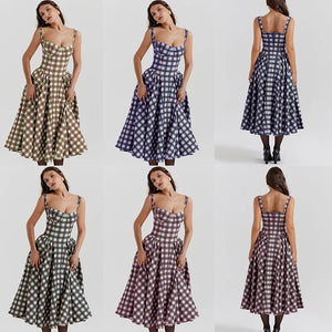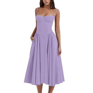 Home Summer skirt new French vintage maxi dress court wind Dopa wear strap dress women